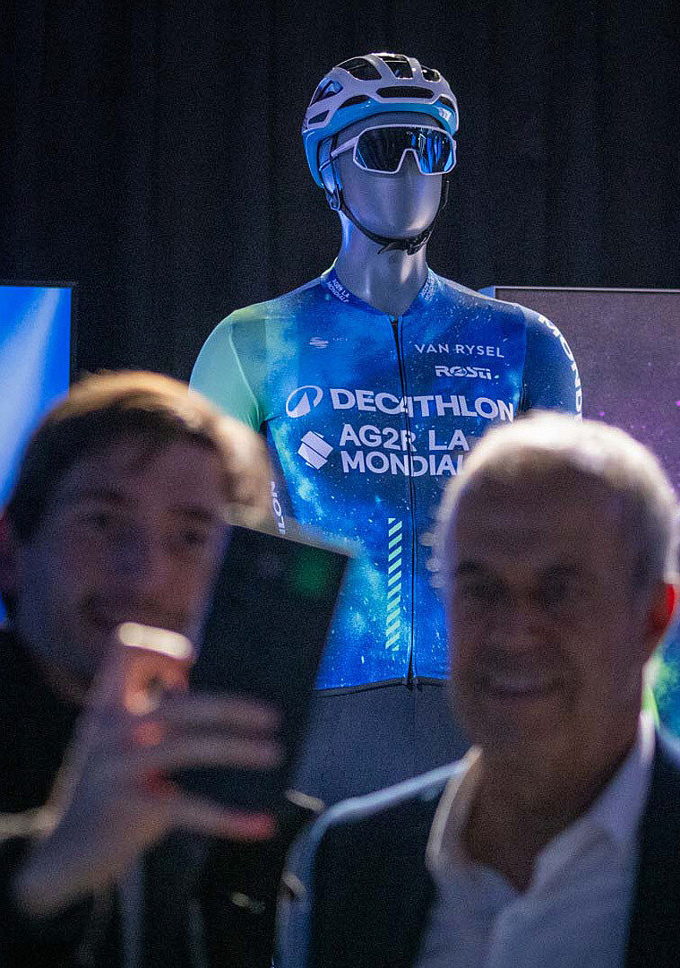 A signing session with the Decathlon cycling team at Decathlon Paris - La Défense offered the public an exclusive first look at the new jersey of the Decathlon AG2R - La Mondiale cycling team.